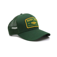 Mid weight 60% cotton 40% Recycled Polyester front and peak, 100% Recycled polyester mesh back